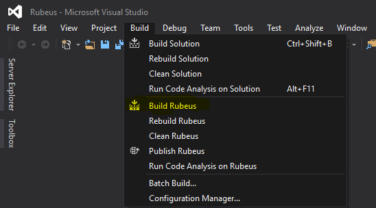 To exploit this, we’ll use a tool called Rubeus. Rubeus is a massive toolset for abusing Kerberos, but for conducting ASREPRoasting, we care about this section. To use Rubeus, you first need to install Visual Studio. Once installed, download Rubeus and open the Rubeus.sln file with Visual studio.