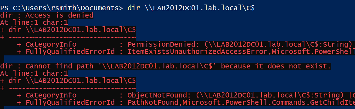 As a PoC, rsmith (who is in the “Users” group), cannot get into the DC.