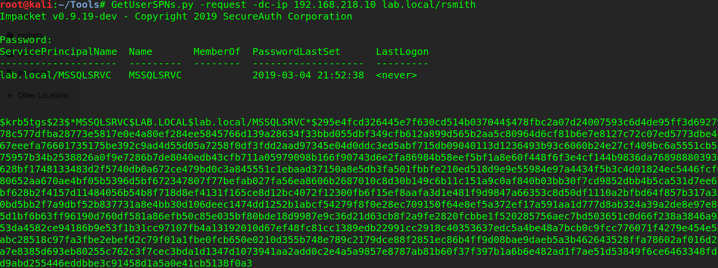 Attack: Kerberoasting | Tool: GetUserSPNs.py