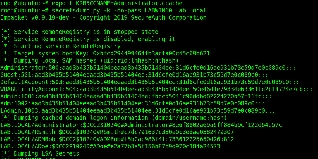 I then logon to LABWIN10 with my silver ticket via secretsdump.py and dump the credentials.