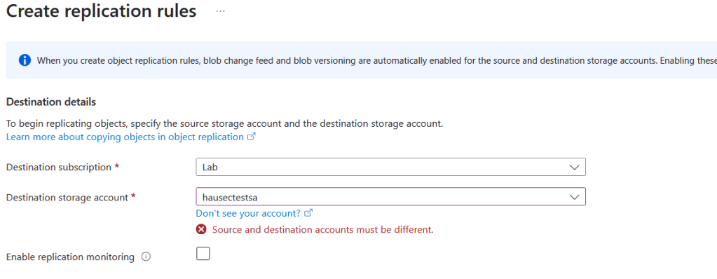But if you specifically want to alert on cross-tenant policies you’re out of luck. Since replication is done via SAS, activity looks the same whether the blob is being copied to the same tenant or a different one. Even when inspecting the rule in the portal, nothing indicates that the policy is ‘cross-tenant’.